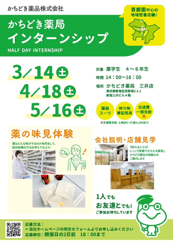 かちどき薬品では、薬学生(4~6年生)を対象に